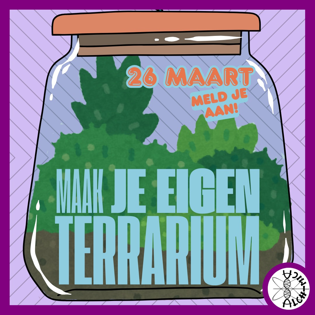 Donderdag 26 maart gaan we jullie leren om een terrarium te maken in Forum B0107! Wij hebben potjes, bodem, plantjes, en gezelligheid voor jullie, maar wel maar een beperkt aantal plekken dus meld je snel aan! Deze keer inclusief tips om de plantjes in leven te houden;) We vragen voor deze activiteit een eigen bijdrage van 3 euro, graag vooraf betalen via de onderstaande link. Aanmelden kan tot woensdag 25 maart 12 uur.