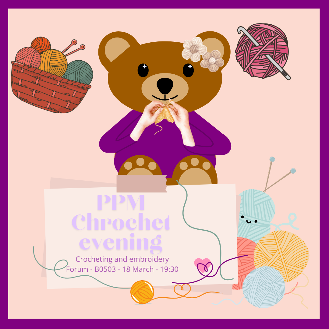 Altijd willen leren breien of haken?? Of ben je al een brei-professional?? Haal bij deze activiteit je innerlijke opa of oma naar boven! Op 18 maart zal de PPM een brei en haak activiteit organiseren in B0503! Er zullen wat brei en haak spullen aanwezig zijn maar neem vooral ook jouw stoffige onafgemaakte werkjes mee!