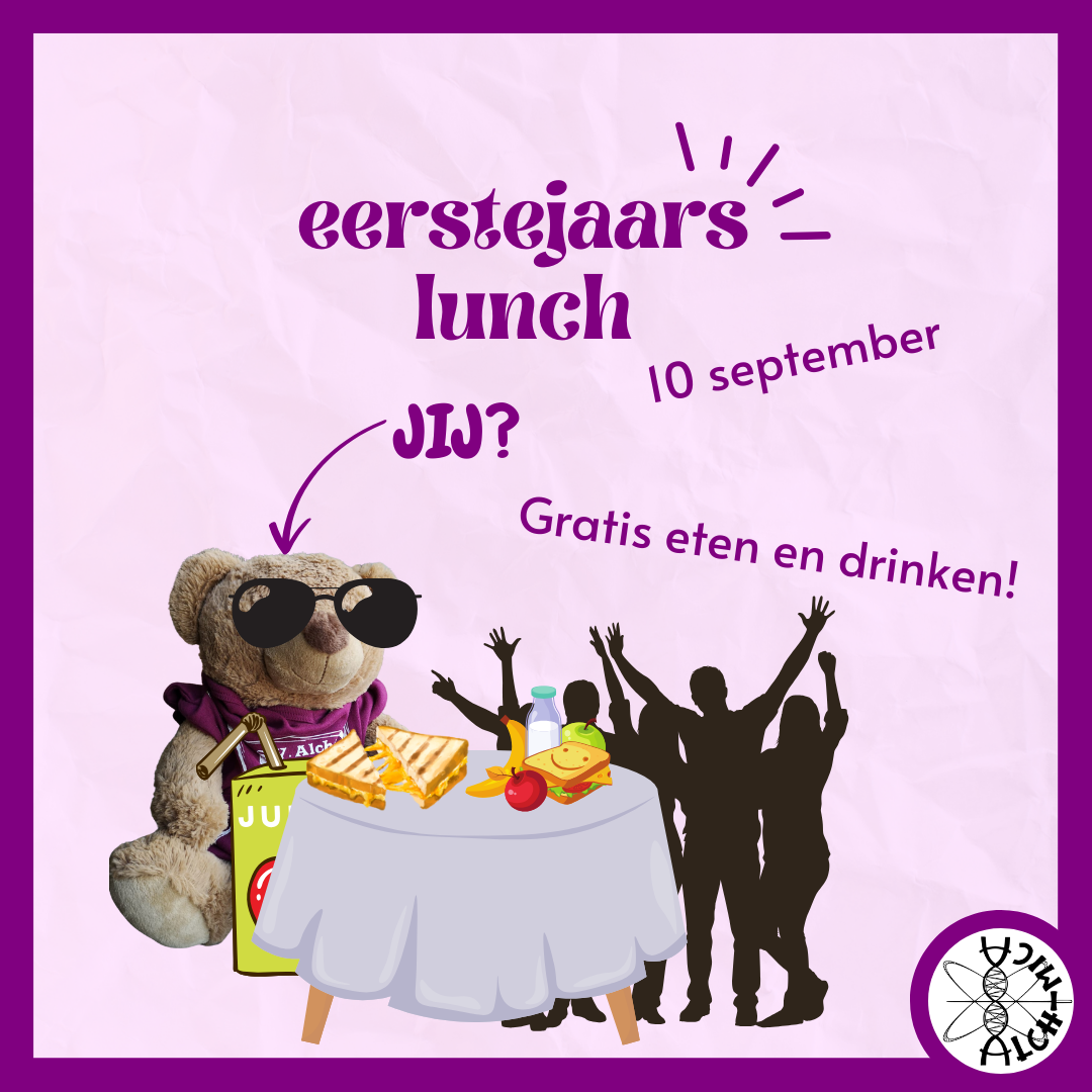 Kom 10 september met je mede sjaars genieten van een heerlijke (en vooral belangrijk gratis) lunch! Exacte tijd en plek volgt nog. XOXO Bestuur