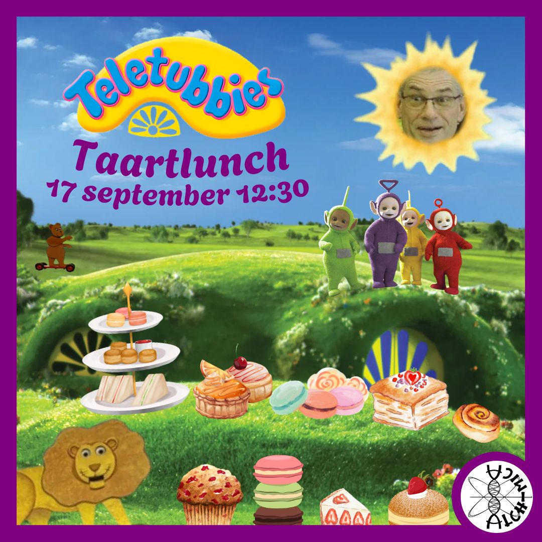 Het zonnetje lacht, de lucht is blauw, taartlievende momo's, kom maar gauw! Op 17 September is er weer een taartlunch, met dit keer als thema: De Teletubbies! Dus kom tussen 12:30 en 13:30 naar lokaal B0417 (Forum) in je mooiste gele, rode, paarse of groene kleding en geniet van heerlijke taarten! Stofzuigers zijn NIET welkom! …